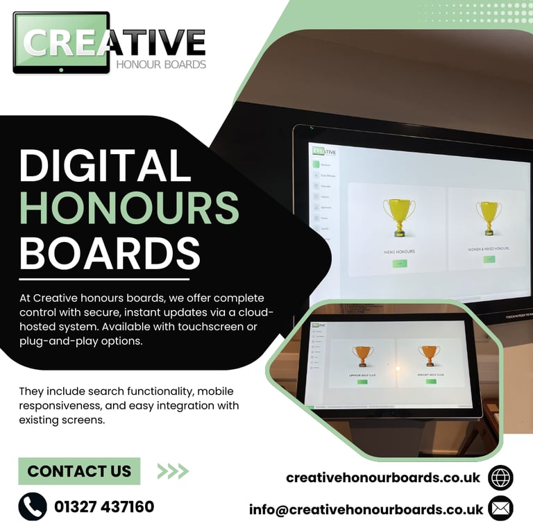 Explore our innovative digital honours board system, customizable in various sizes to suit your needs or plug and play into your existing screens.