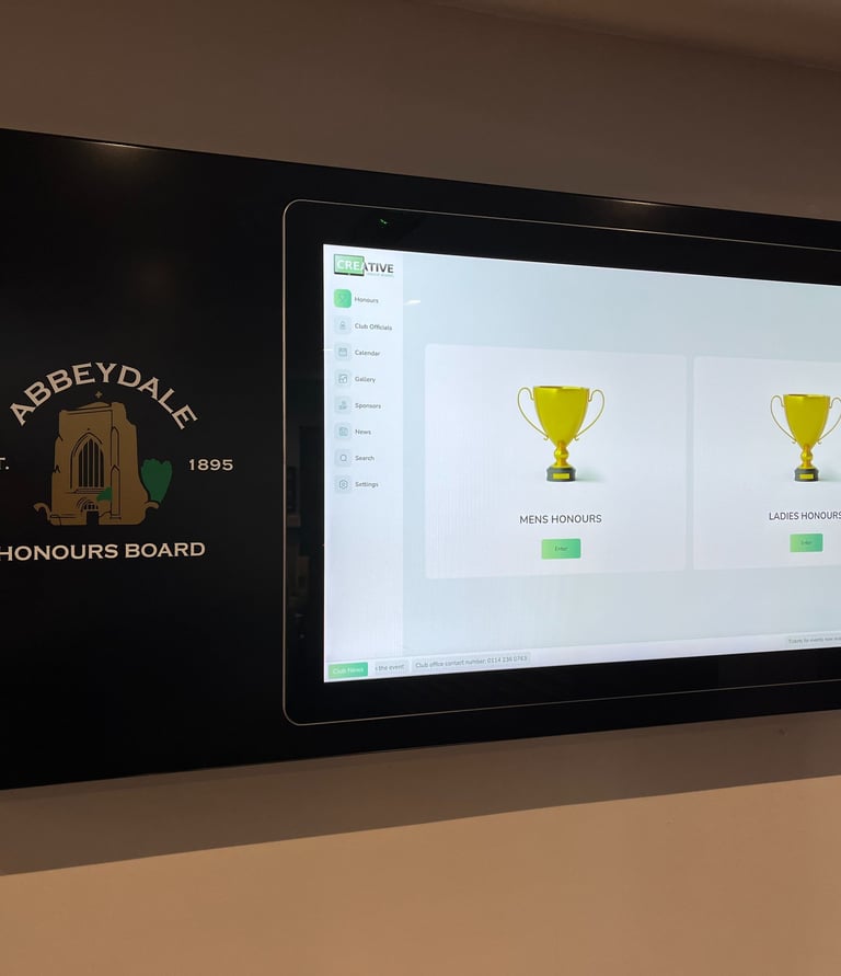 Our interactive digital honours board range with touch screen functionality or as a simple digital display format. All screens have a bespoke software designed to accommodate any amount of awards and display them in a format that is both easy to read and navigate.